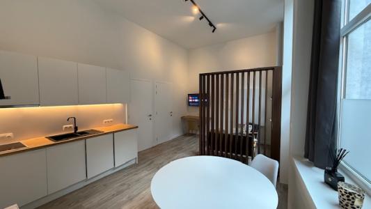Kitchen : Studioflat kitchen with fridge/freezer, electrical stove (2), cooker hood